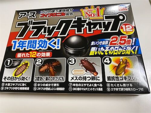 ▲パッケージ表 1LDK?なので12個で充分。18個だと多いです。 ▲パッケージ裏 ▲パッケージ左側面 ▲パッケージ左側面 ▲包装 ▲本体 開封した瞬間から黒糖のようなあまーい匂いが漂います。 これがゴキブリが好きな匂いなんだね。 ▲本体側面 薬剤が中央にくっつけ…